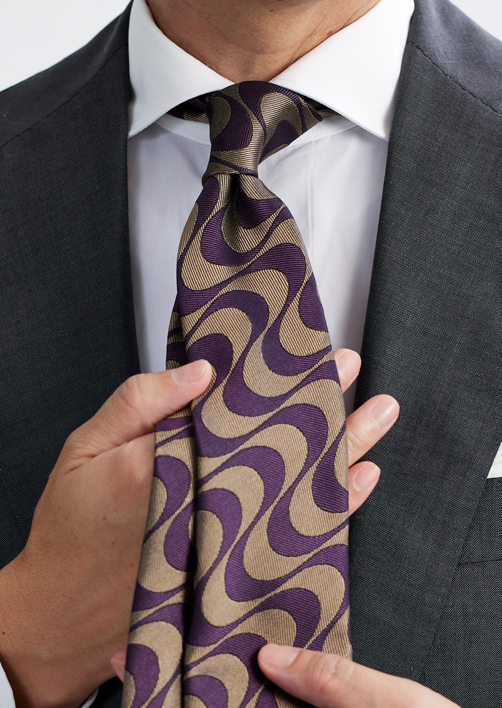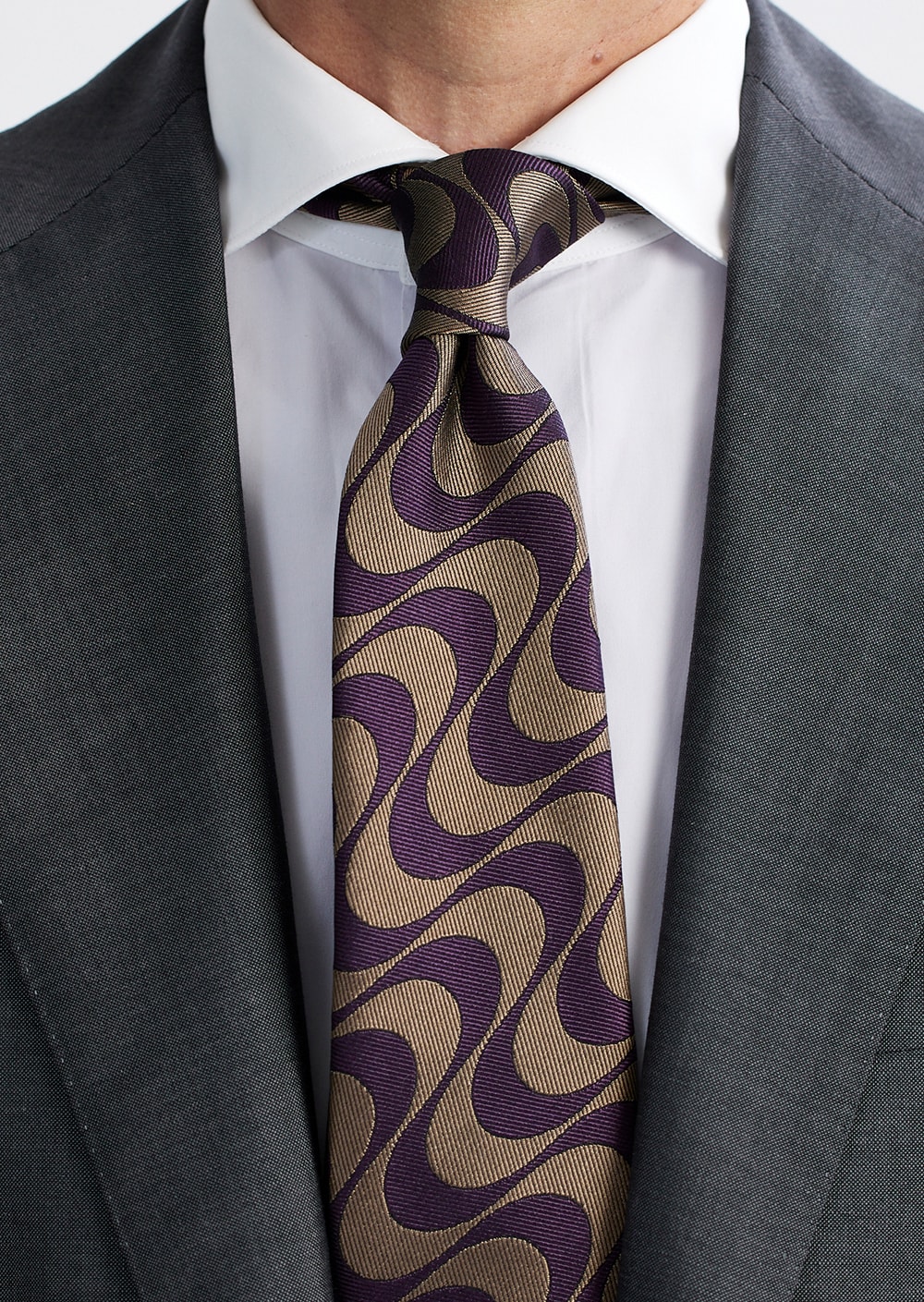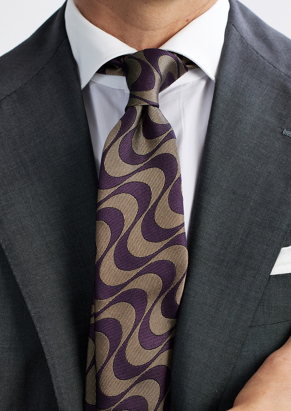 クセのあるデザインに見えますがこの様なジオメトリック柄はネクタイの世界では欠かせない要素。 織り柄の変化も美しい最高にお洒落な1本です。