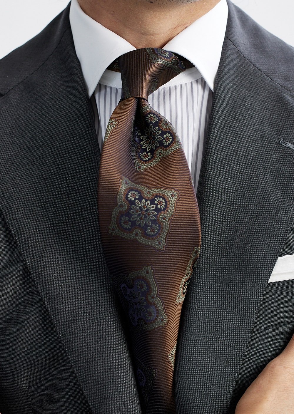 Hollyday & Brown はノットしたからしっかりと太さがあるボトルシェイプが魅力、エグゼクティブな雰囲気が際立ちます。 あくまで大剣幅は9cmではなく8.5cmで使いやすいのも重要なポイントです。