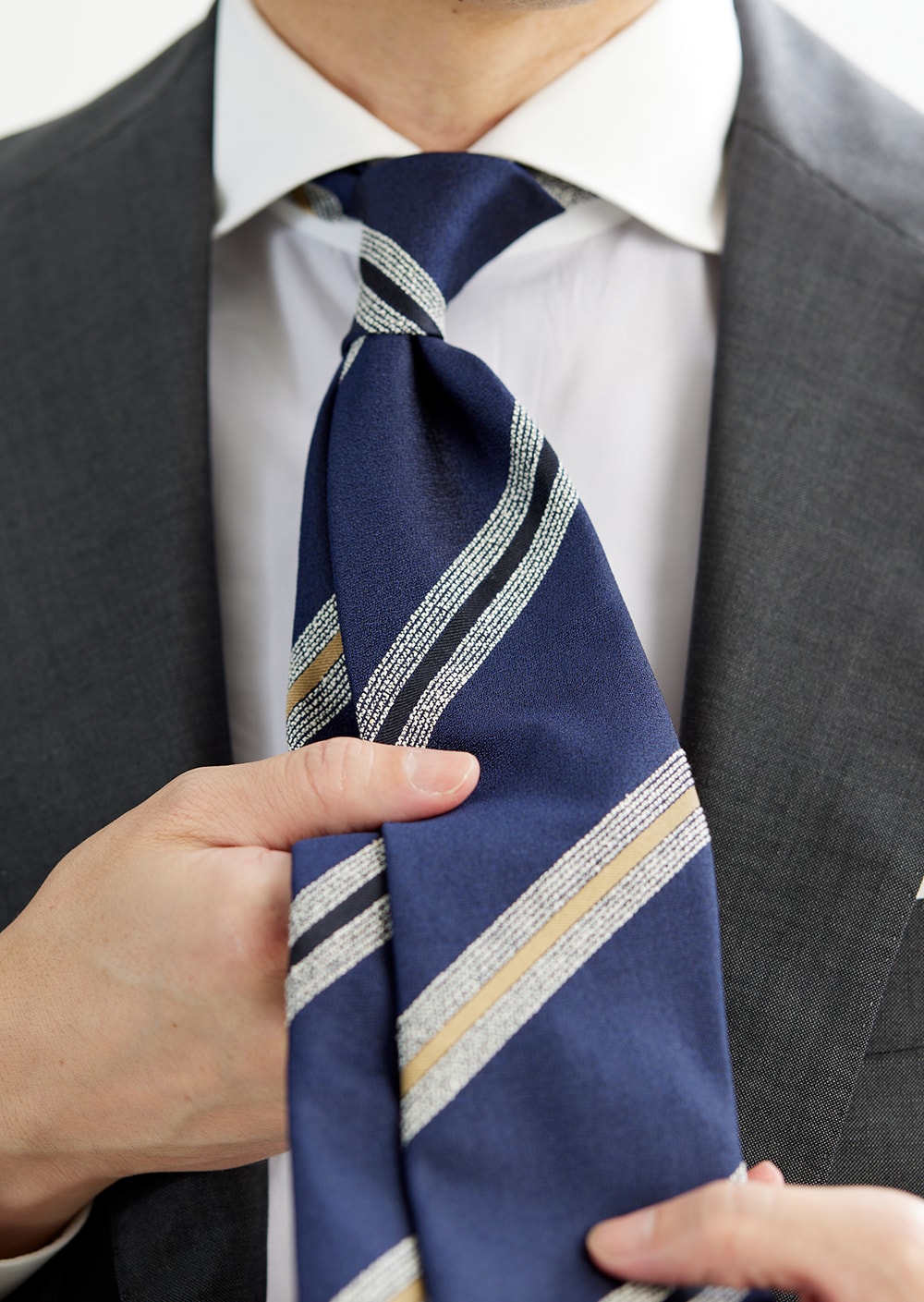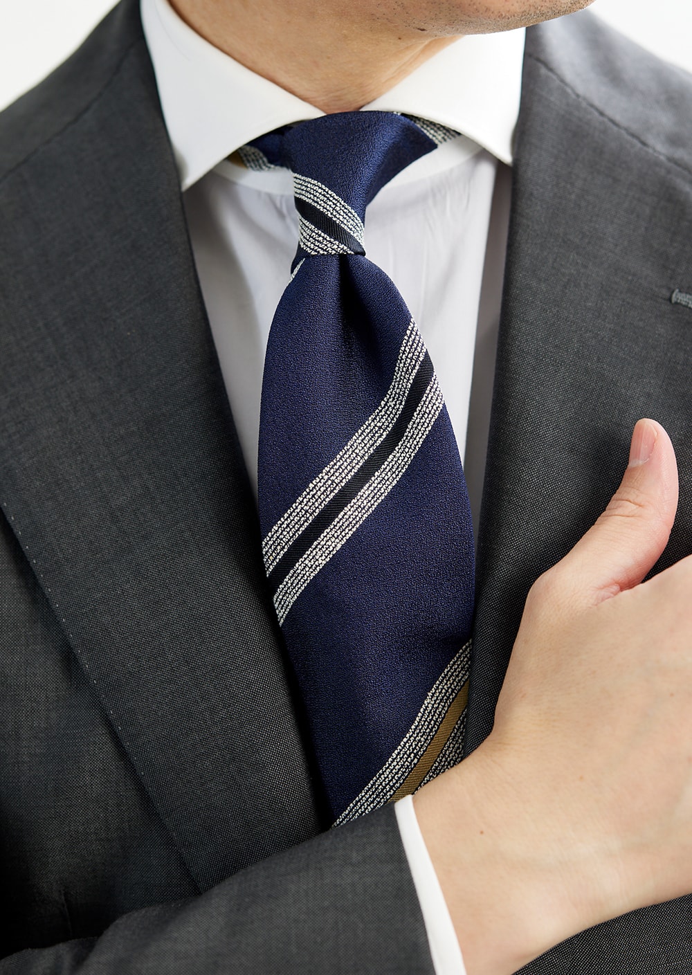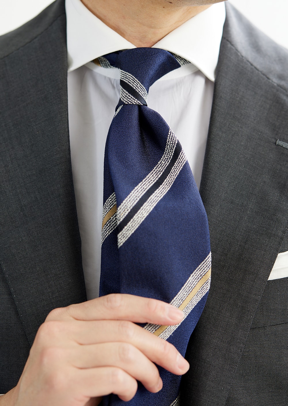 シルク100%だけでなく、シルクウール、リネン、カシミヤ、シルクコットンなど幅広い糸を表現豊かに使用しネクタイの魅力を最大限に引き出します。