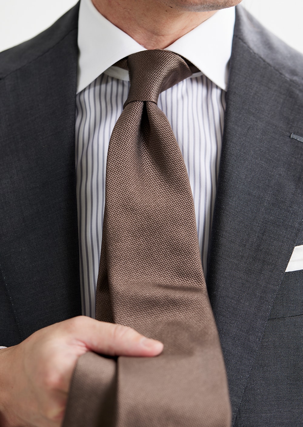 シルク100%だけでなく、シルクウール、リネン、カシミヤ、シルクコットンなど幅広い糸を表現豊かに使用しネクタイの魅力を最大限に引き出します。